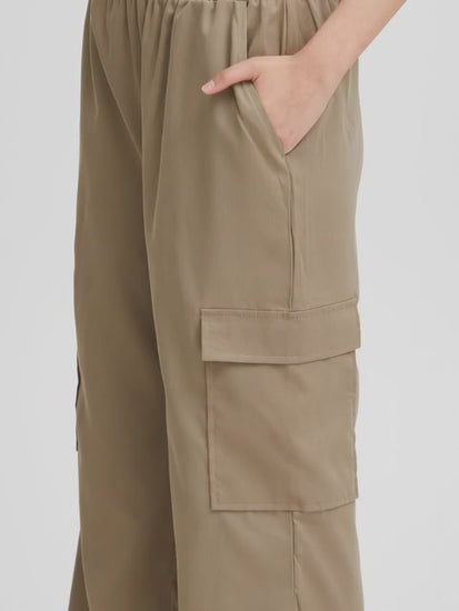 Women's Beige Linen Cargo Pants with Bow Tie Waist